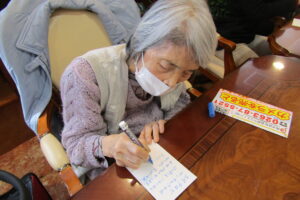 ご主人に、子供様に、天国のご両親に、それぞれの思いをそれぞれの言葉でハガキに書きました。最初は「書く相手がいない」と口々に言っておられましたが、書き出すと真剣に書き上げていきます。発表する時、思わず涙が出そうでした。たくさんの言葉ではないかもしれません。もっと書きたいこともあったかもしれません。それでもハガキ1枚に書かれた「ありがとう」は、普段言葉にしない分、胸に熱く響く言葉でしょう。